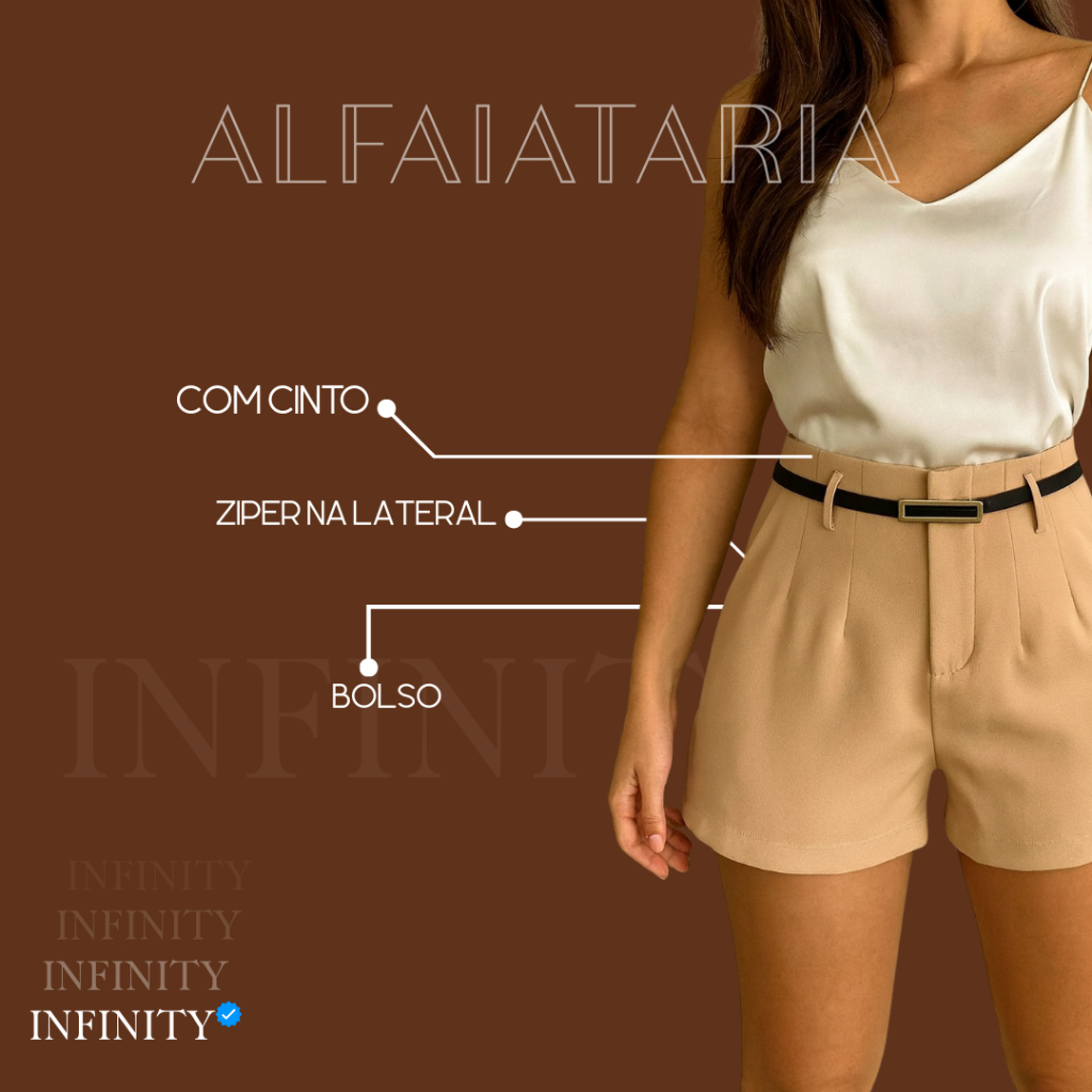 Short Casual Alfaiataria Feminino Com Cinto Com Bolso Cintura Alta PROMOÇÃO