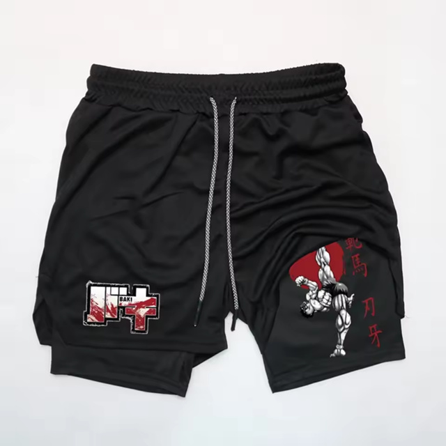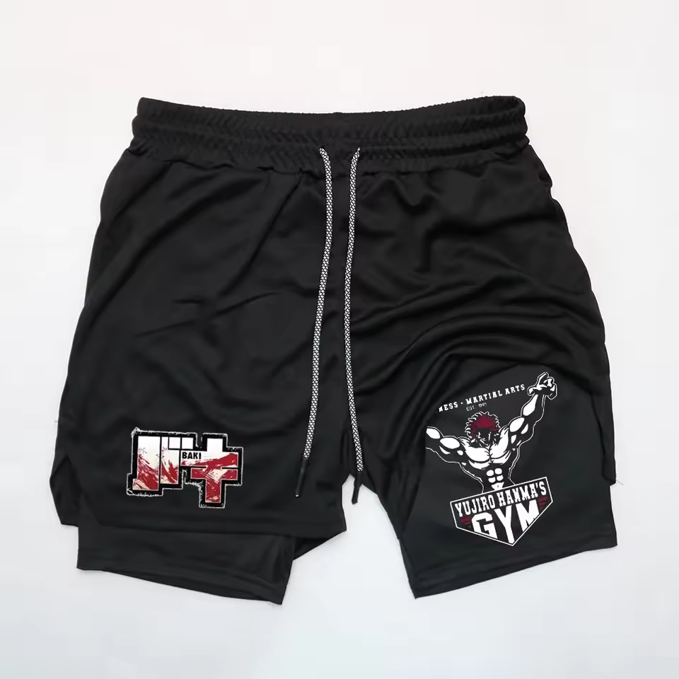Short Compressão 2 em 1 Dry-Fit Baki Hanma Gym Yujiro Arte Sua Estampa Favorita Fitness Treino