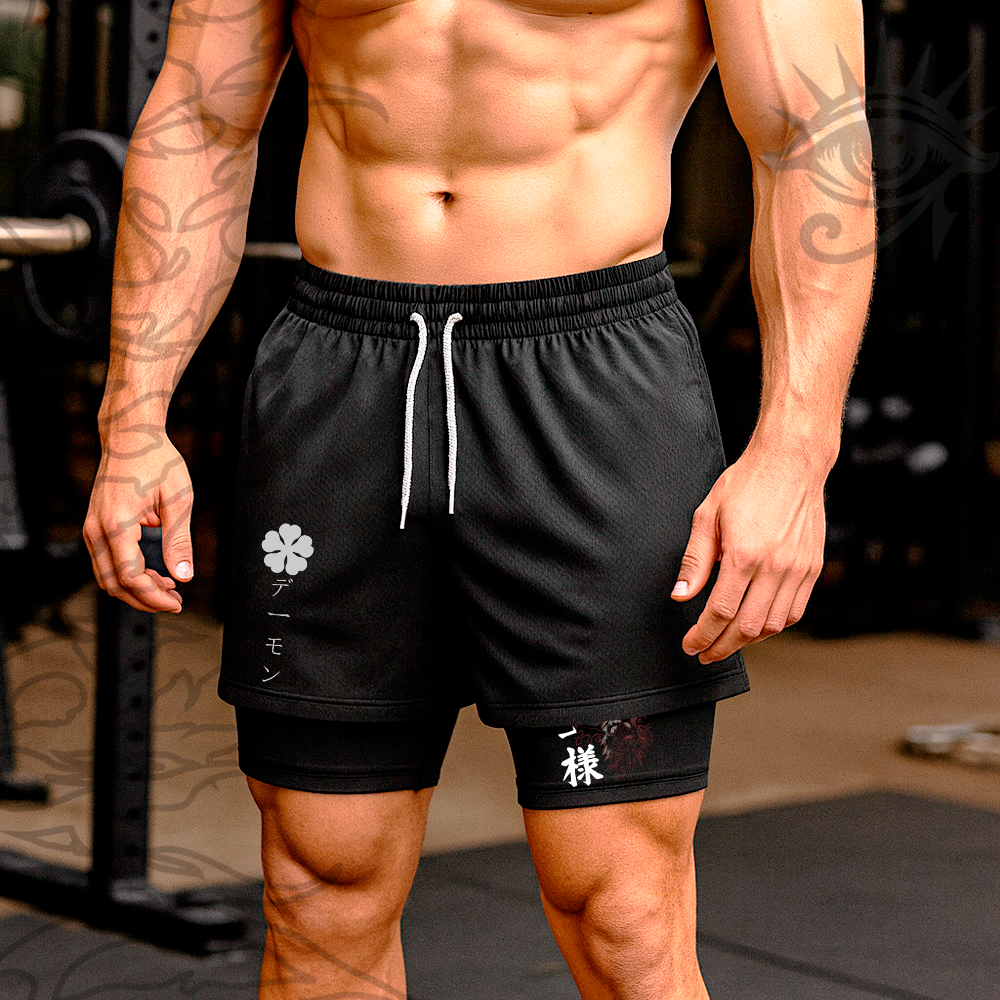 Short Compressao 2 em 1 Fitness Black Clover Asta Liebe Mago Anime Gym Treino -Darknezz