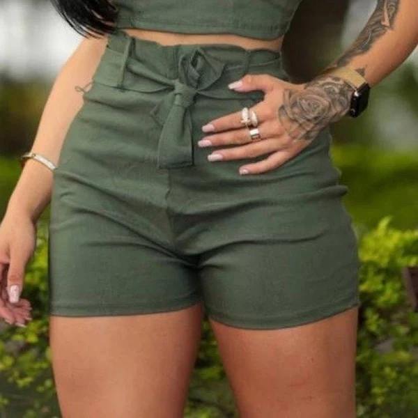 Short Curto Laço Bengaline Shortinho Feminino Cintura Alta Top Com Bolso