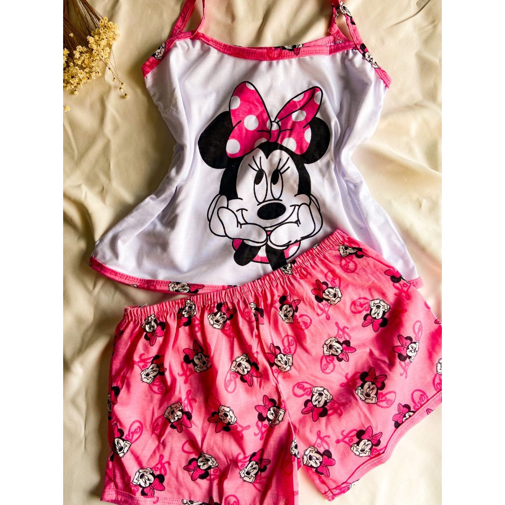 Short Doll VÍRGINIA Personagens Alça Malha Verão Pijama Blusa Short Estampado