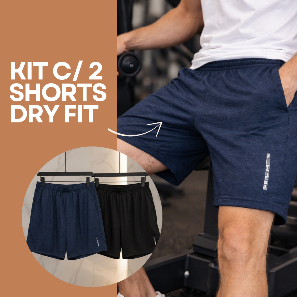 Short Dry Fit Masculino Kit com 2 Dois Treino Corrida Confortável Short Básico Futebol Academia