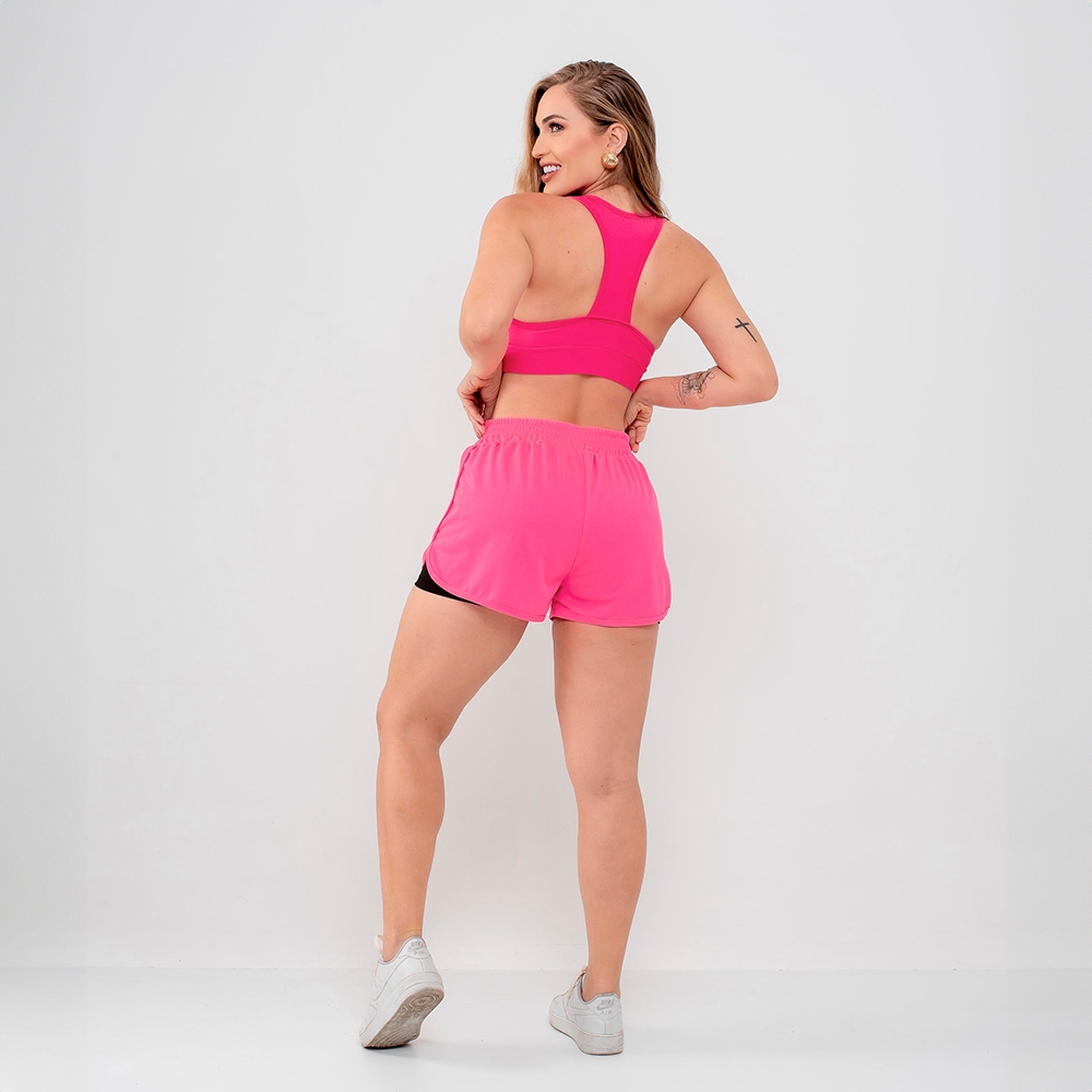 Short Duplo Feminino Fitness Suplex com Dry de Poliéster Cintura com Elástico e Secagem
