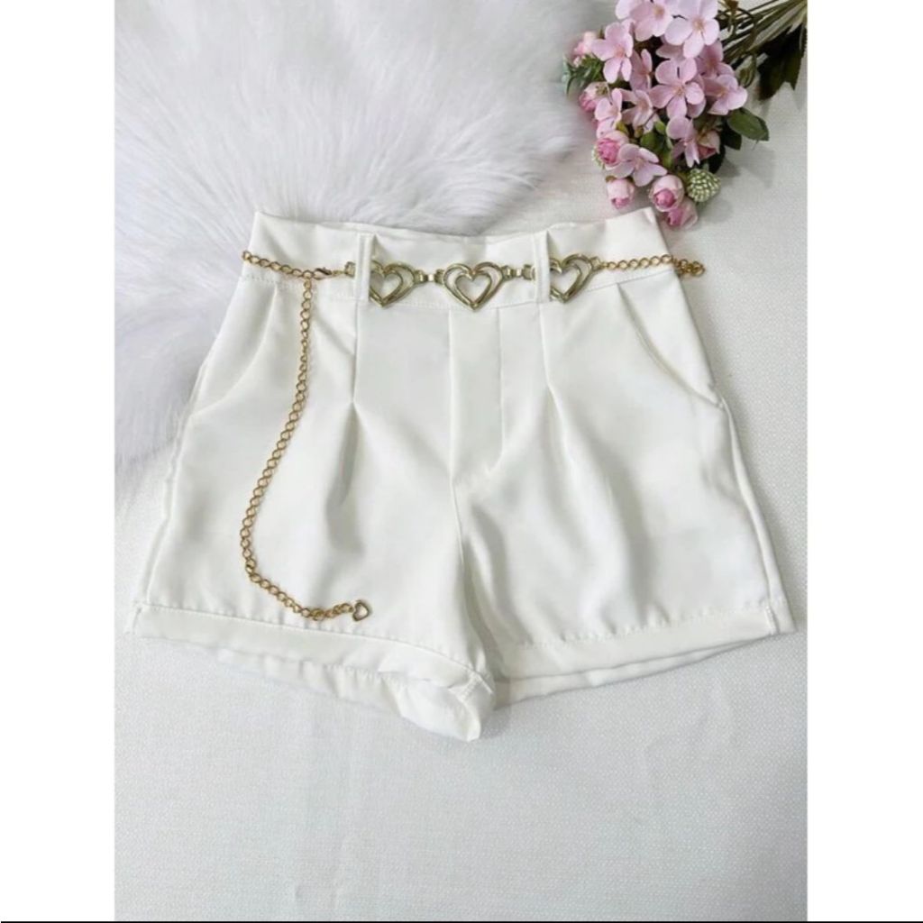 Shorts alfaiataria com cinto coração Ou Cinto separado sozinho. Esse shorts veste do tamanho 34 ao 44. Pode até servir 46.