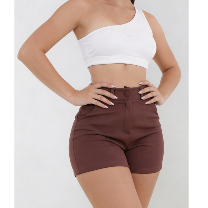 Short Feminino Cintura Alta com Botão Tecido em Neoprene Moda Verão em Promoção 2026 Copa Do Mundo