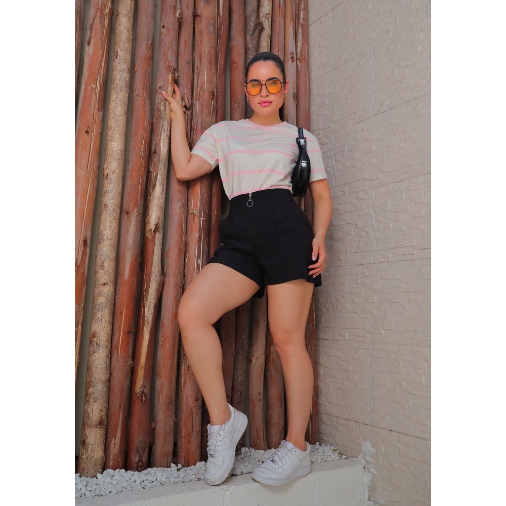 Short Feminino Cintura Alta Zíper Frontal – Estilo Alfaiataria