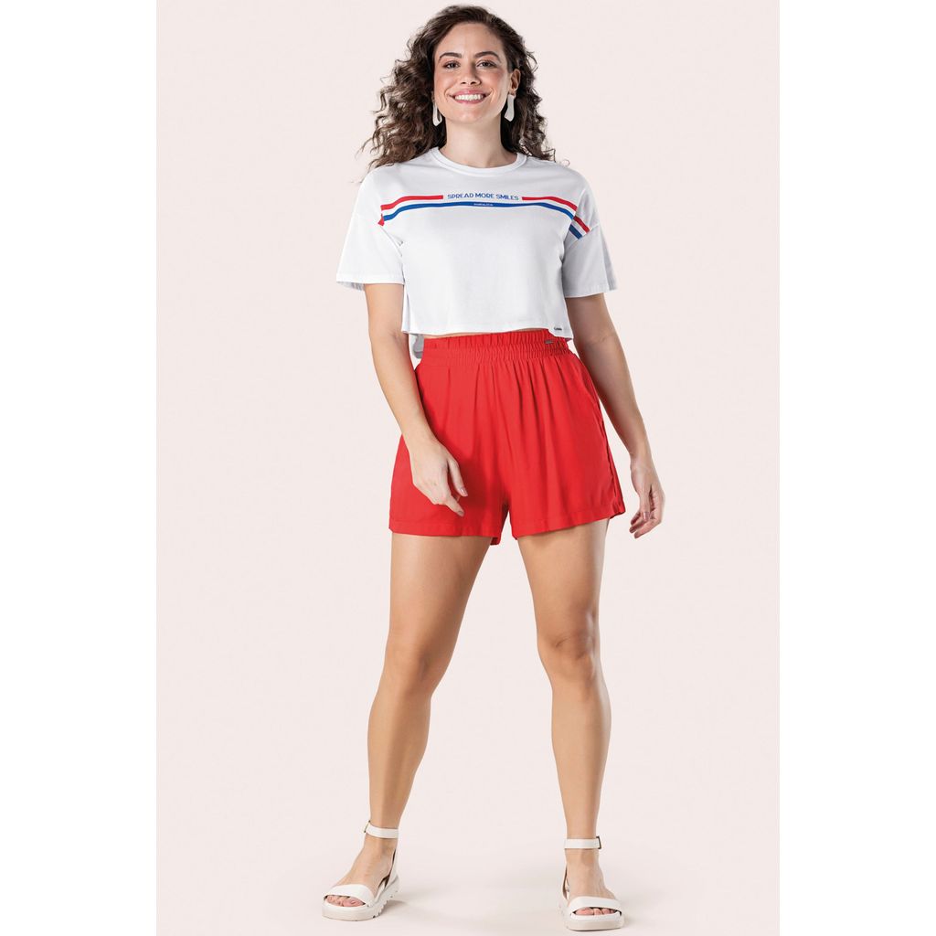 Short Feminino Cós Alto com Bolso Marialícia Vermelho