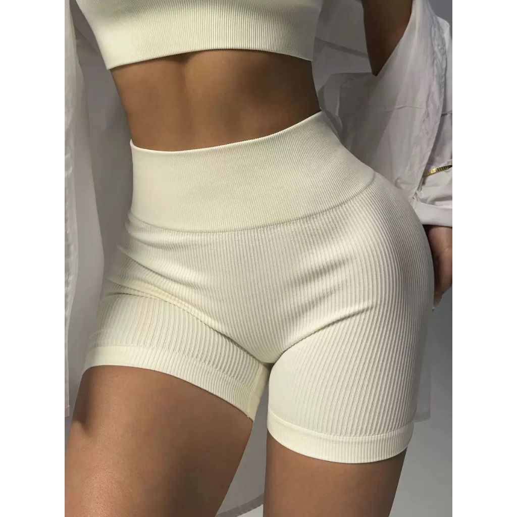 Short Feminino Fitness Canelado Poliamida Grossa Premium Treino Yoga Sem Empina Bumbum