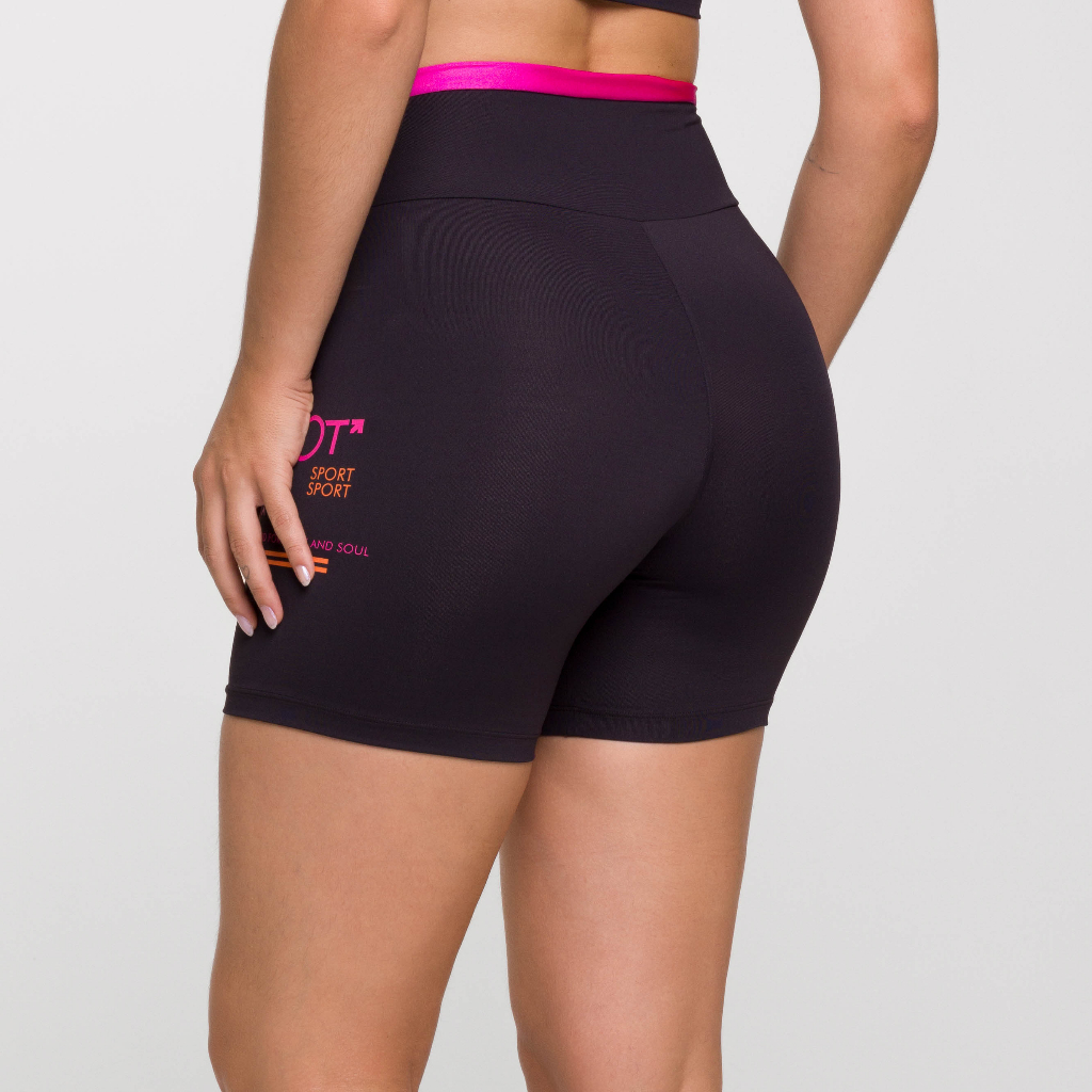 Short Feminino Fitness Poliamida Preto Short Academia para Treinar e Malhar Cós Rosa Sport
