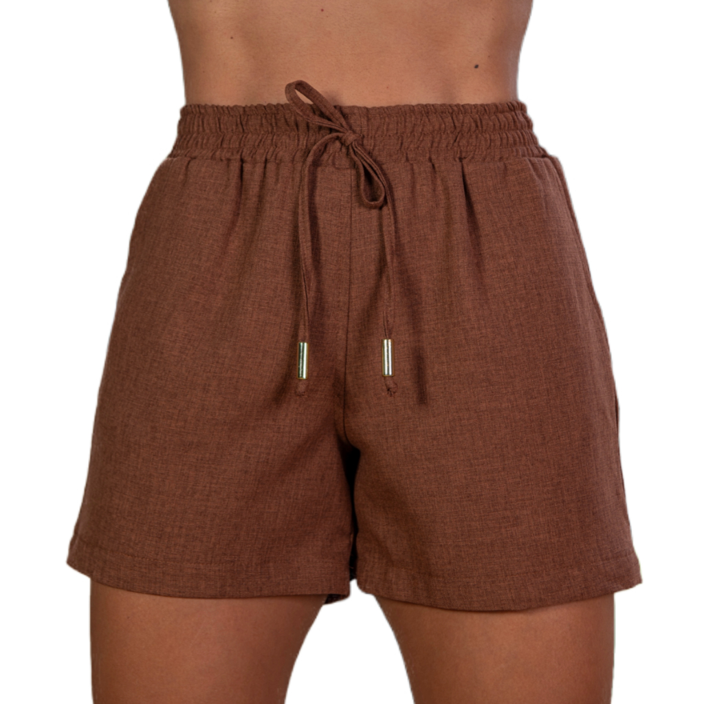 Short Feminino Linho Plus Size Cintura Alta com Bolso e Elástico Confortável e Elegante do 34 ao 46