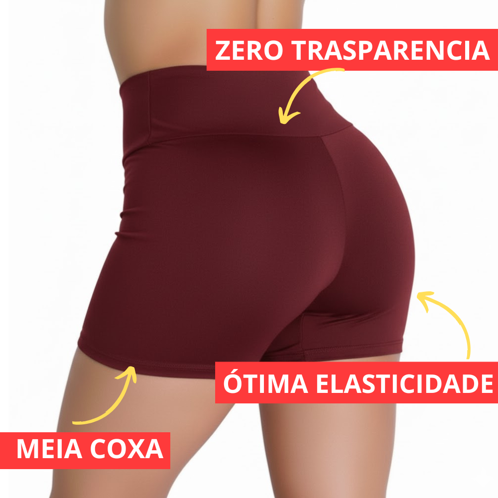 Short Fitness Feminino Academia Cós Alto Suplex Premium Zero Transparência Legging Curta