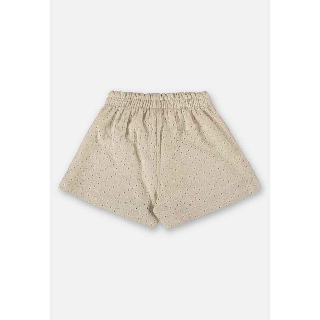 Short infantil confeccionado em laise, uma combinação de viscose e linho, que garante leveza e conforto ao toque, ideal para dias quentes. Com forro em algodão, proporciona suavidade e bem-estar para a pele sensível das meninas. Possui faixa sobreposta e elástico ajustável na cintura, proporcionando um ajuste confortável e seguro. Perfeito para compor looks elegantes e frescos, sendo uma escolha versátil para ocasiões casuais ou especiais.Tecido: Short: Laise / Forro: Tecido VoilComposição: 70% viscose 30% linho / Forro: 100% algodãoModelagem: AmplaComprimento: CurtoForro: SimCintura: Média
