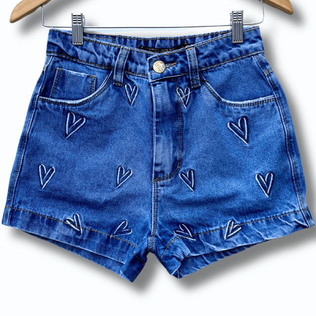 | Short jeans feminino cintura alta bordado de coração este produto | R$ 59,98 | 25% | 4.9/5 | 73 |