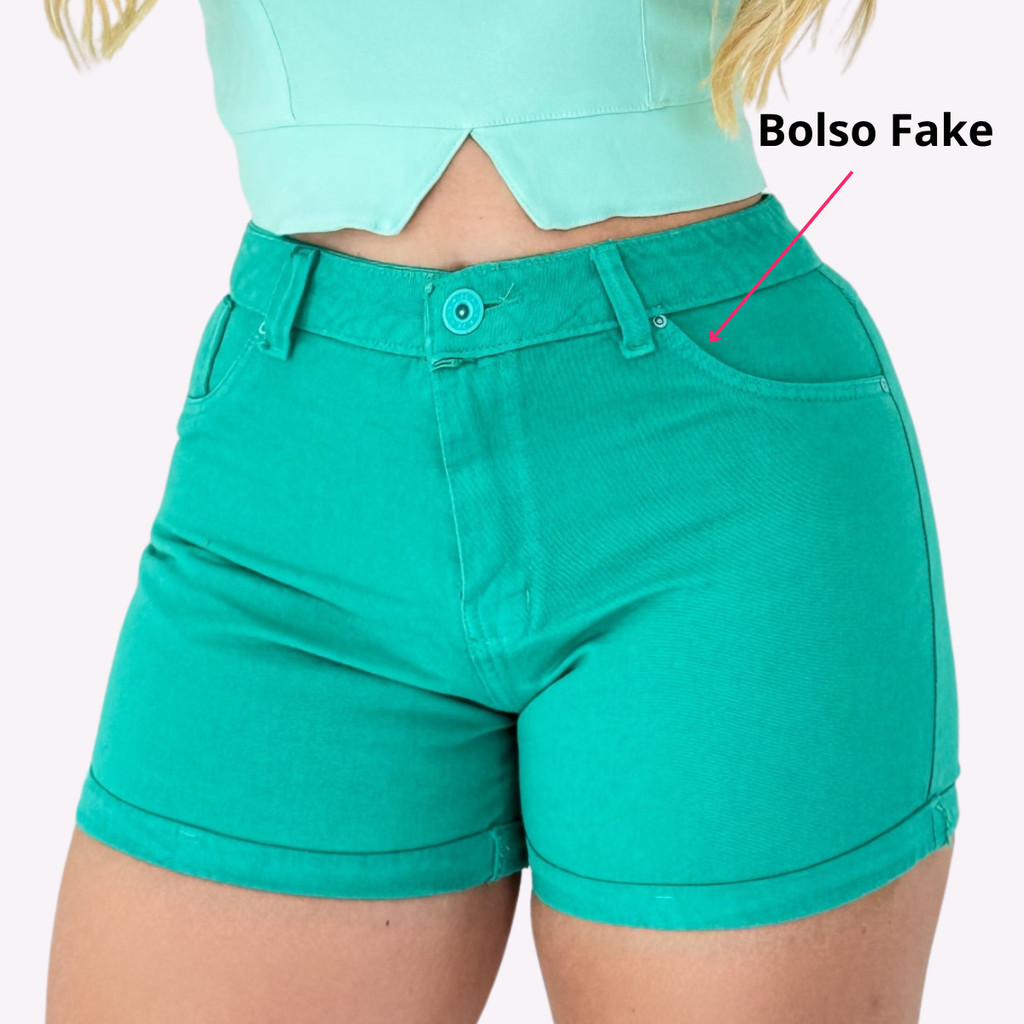 Short Jeans Feminino Cintura Alta Shorts Empina Bumbum Cores Premium Super Hot Pants Com Bolso