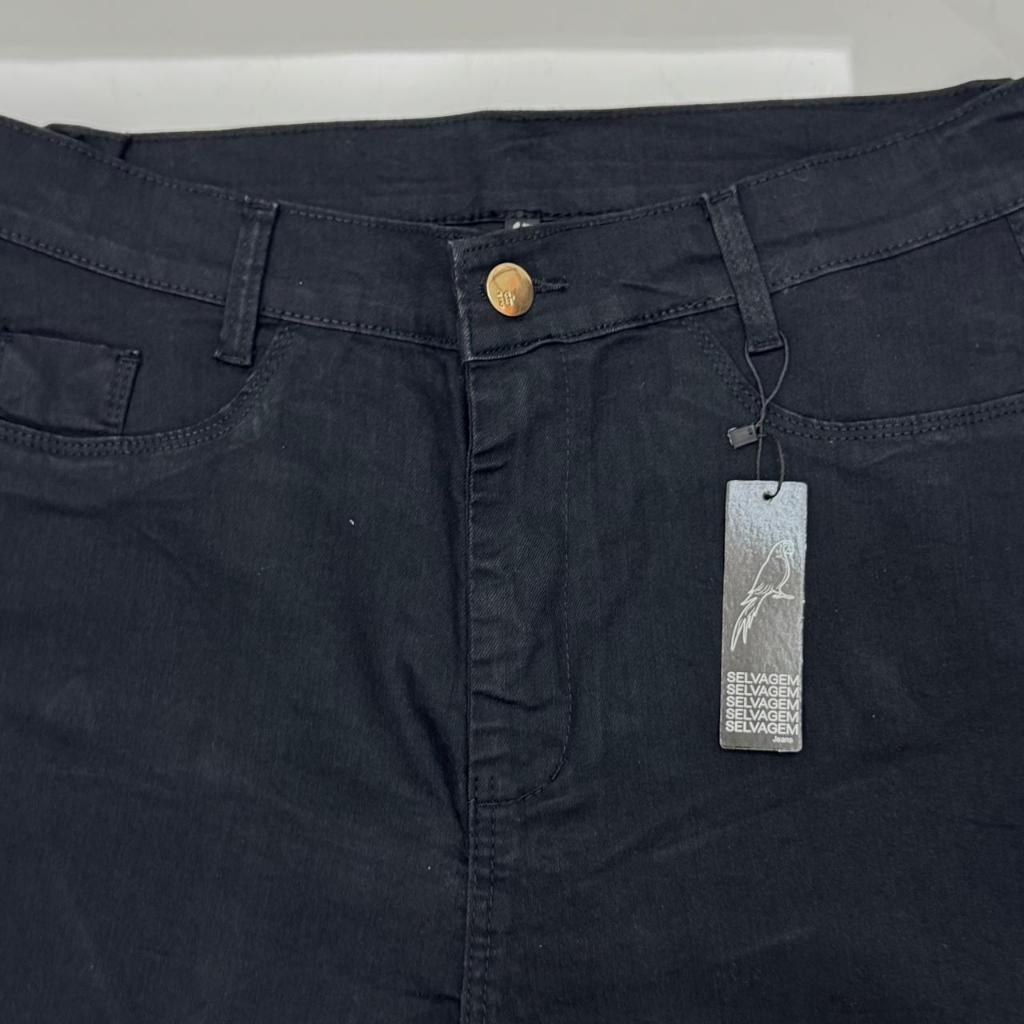 Short jeans preta barra dobrada plus size tamanho grande