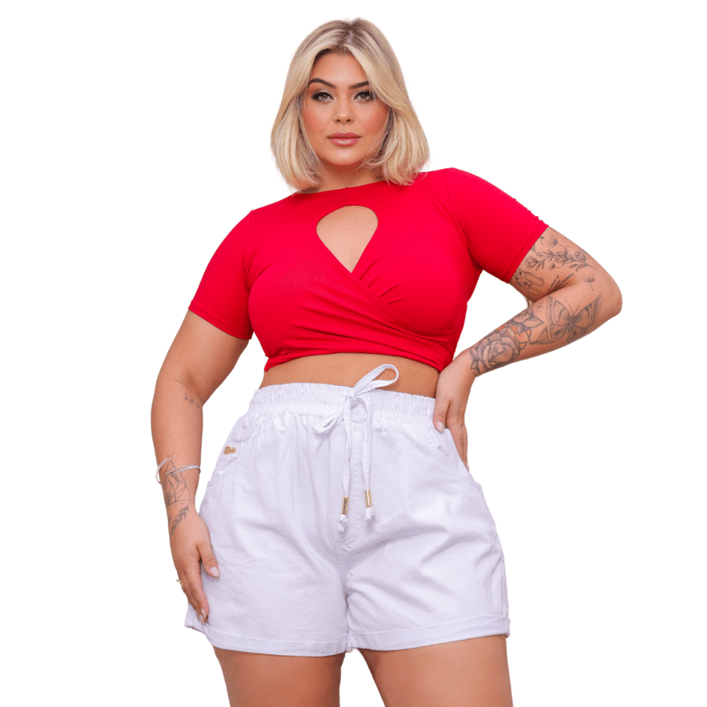 Short Jogger Branco Feminino Plus Size Com Elastico No Cós e Elastano