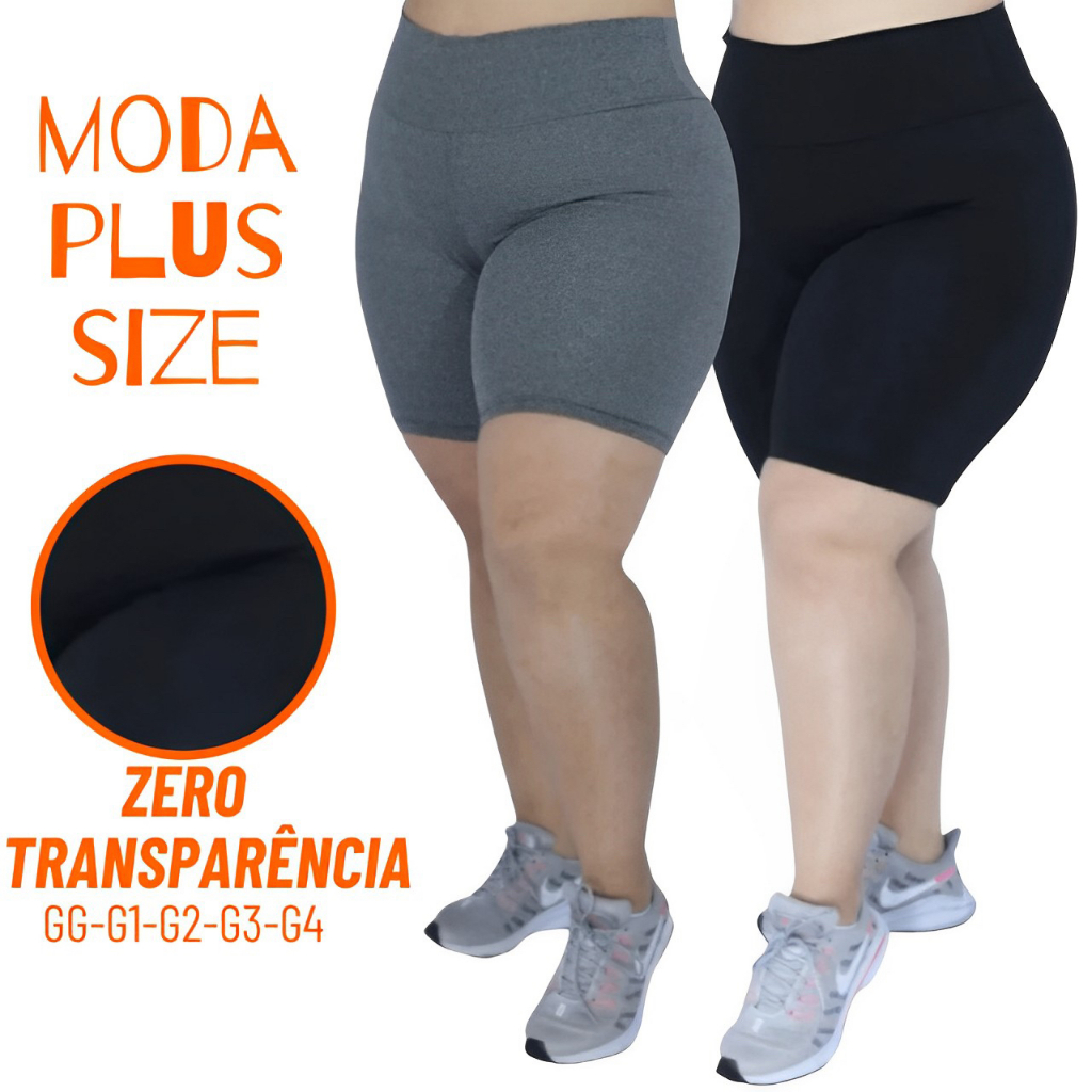 Short Legging Plus Size Feminino Meia Coxa Suplex Bermuda Cintura Alta Academia Zero Transparência