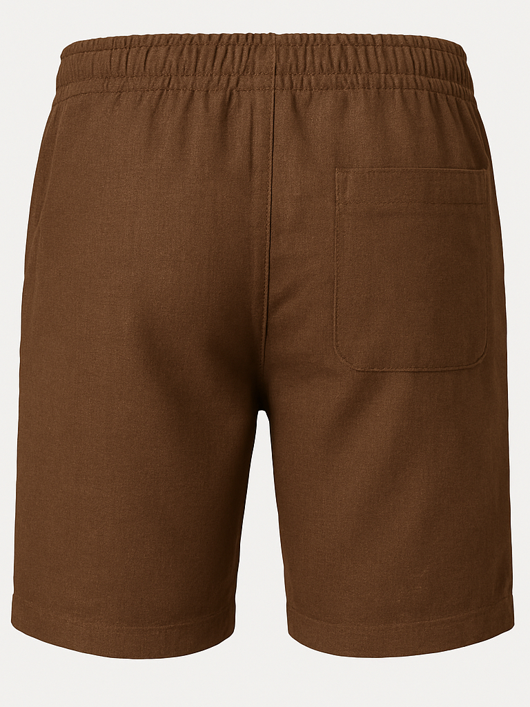 Short Linho Masculino Bermuda de Linho Café com Bolsos Casual Confortável Passeio