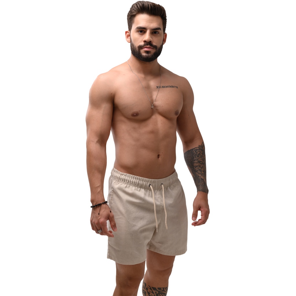 Short Masculino Bermuda Linho Curto Praia Verão Slim Premium Cores Impecável Nacional