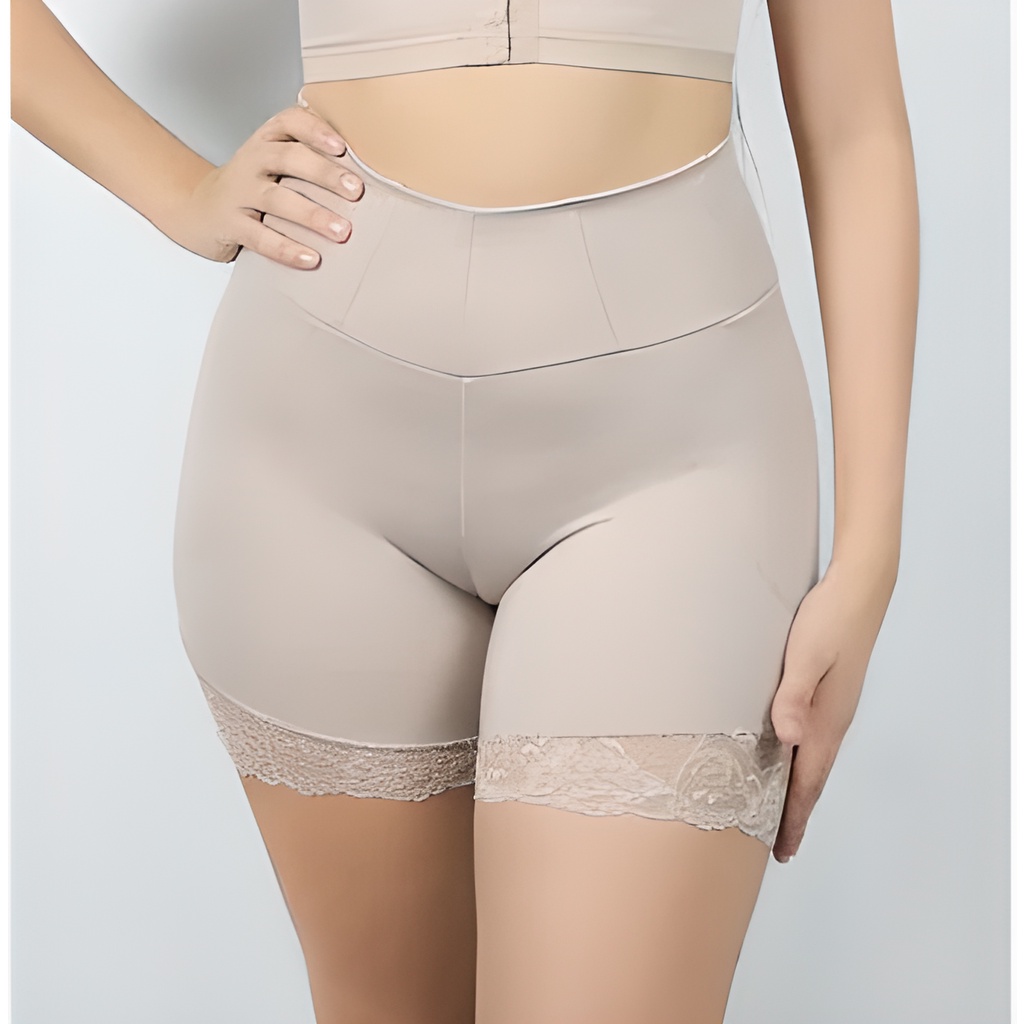 Short modelador confeccionado em cetinete power, com pala dupla e 04 barbatanas que permite uma modelagem perfeita, pois não enrola e acintura sem marcar e sem amassar o bumbum. A renda na perna da um toque especial e sofisticação a peça. CARACTERÍSTICAS Reforço abdominal; Detalhes em renda; TAMANHOS P 40 M 42 G 44 GG 46 COMPOSIÇÃO TECIDO: 79% Poliamida 21% Elastano RENDA: 90% Poliamida 10% Elastano CUIDADOS ESPECIAIS Lavar na mão, Não lavar na máquina, Não utilizar alvejantes, Não passar, Não lavar a seco.