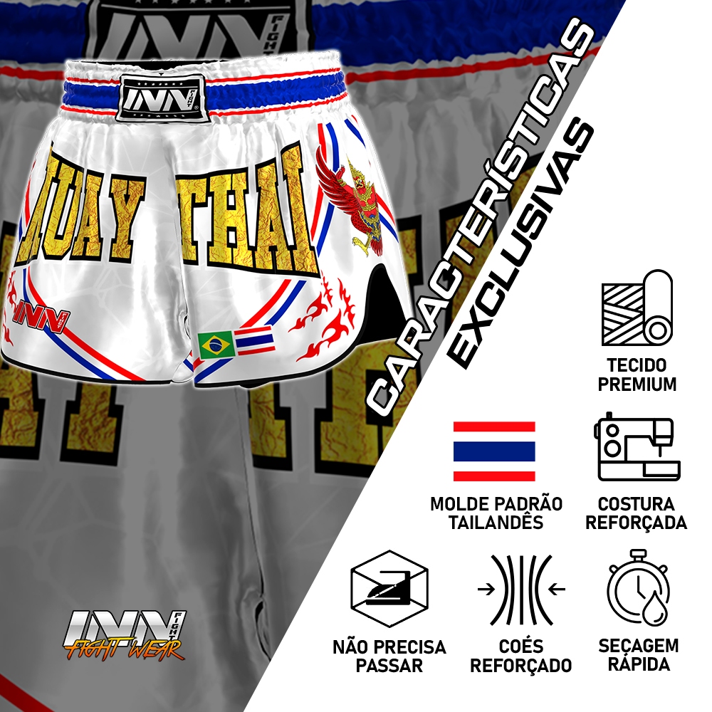 Short Muay Thai Champion Fighter Garuda White Unissex