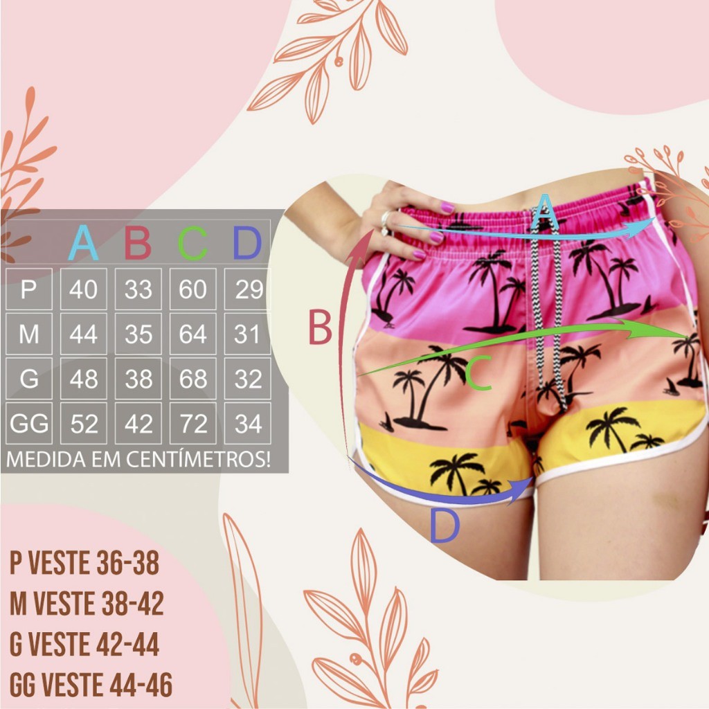 Short Praia Feminino Tac Tel Com Elastano Coqueiro