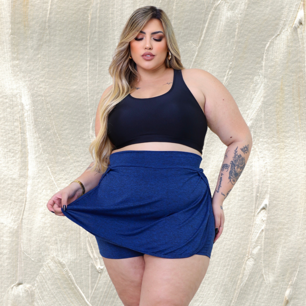 Short Saia Academia Plus Size Tapa bumbum fitness tecido Dry Fit Dia a dia 44 ao 56 Tamanho Grande