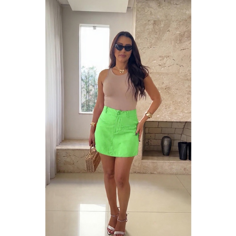 short saia bolso falso en tecido marrante en diversas cores y tamanhos moda gringa