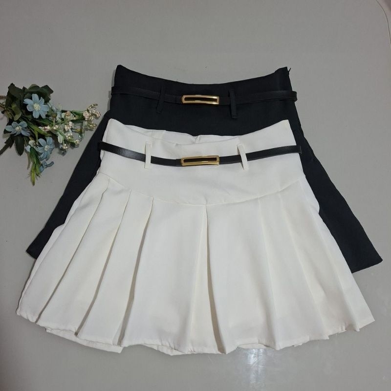 Short Saia Feminina Plissado Alfaiataria Zíper na Lateral Acompanha o Cinto Tendencia
