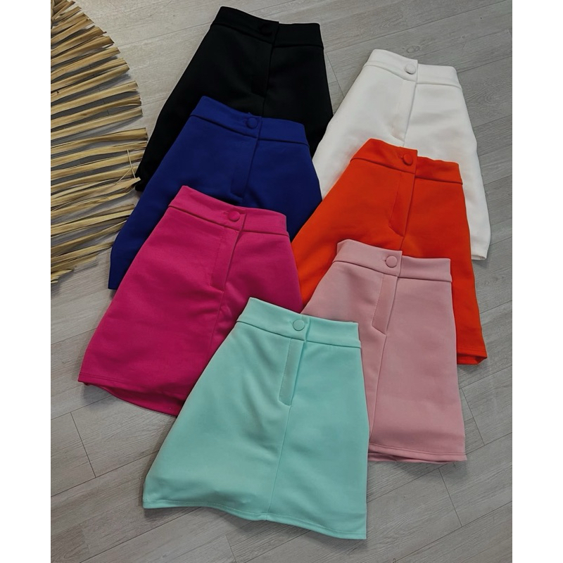 Short saia feminino neoprene botão Cintura alta promoção tendência