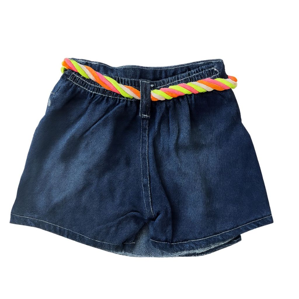 Short Saia Jeans Infantil Feminina Cintura com Cordão Colorido Menina Blogueirinha – Tamanho 0 ao 7