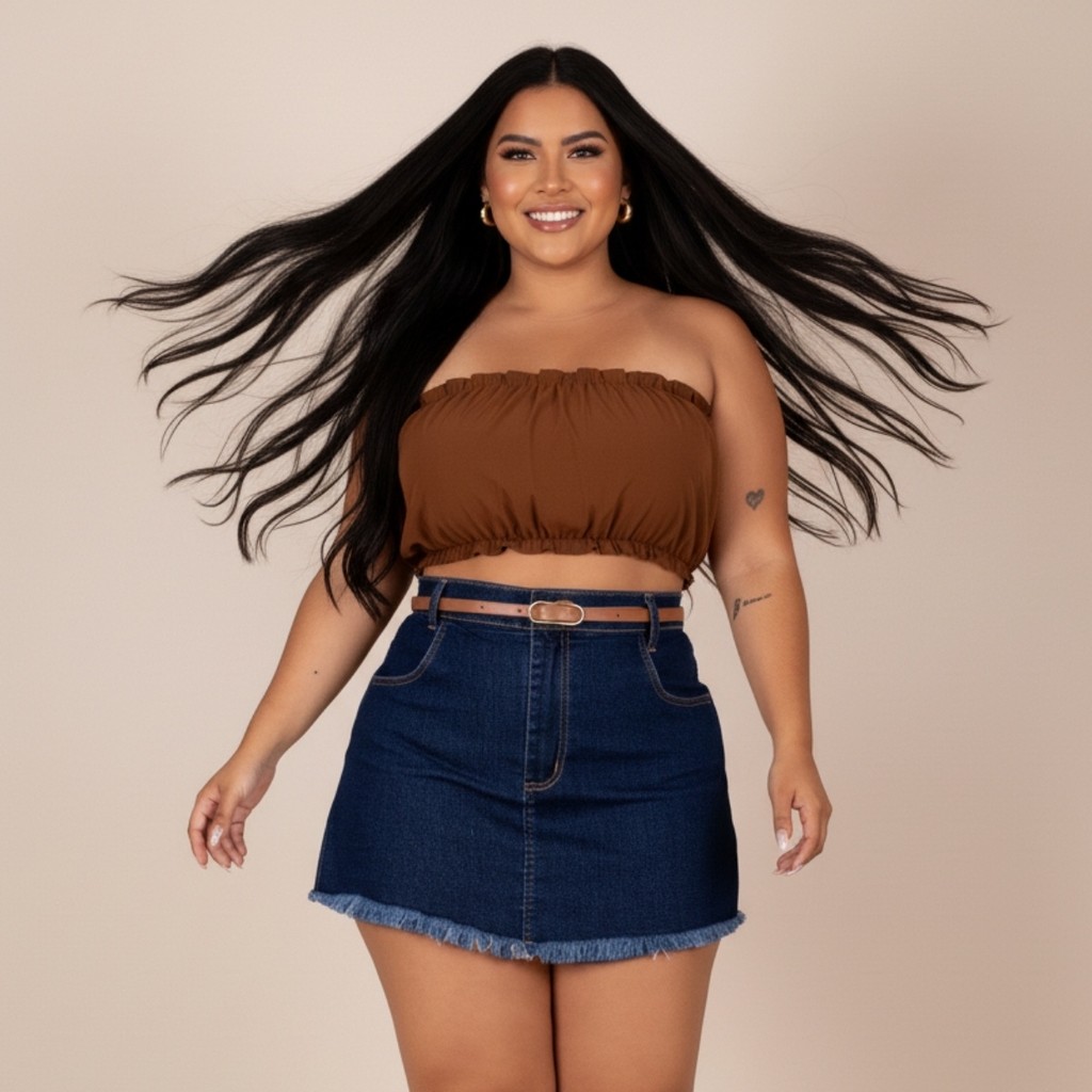 Short Saia Jeans Plus Size Cintura Alta Barra Desfiada CintoDetalhes do Produto: • Cintura Alta: Realça a silhueta e oferece um ajuste perfeito para valorizar suas curvas. • Barra Desfiada: Toque moderno e despojado, acrescentando um charme especial ao look. • Conforto Plus Size: Modelagem projetada para garantir o máximo de conforto e liberdade de movimentos. • Tecido Premium: Jeans de alta qualidade, resistente e suave ao toque, proporcionando durabilidade e bem-estar. Cor: Azul Comprimento: Curto Modelo: Short Saia Material: 98% Algodão 2% Elastano Forma: Normal Medidas Aproximadas Tamanho 46 (cintura: 84 cm, quadril: 112 cm) Tamanho 48 (cintura: 86 cm, quadril: 114 cm) Tamanho 50 (cintura: 92 cm, quadril: 117 cm) Tamanho 52 (cintura: 98 cm, quadril: 120 cm) Tamanho 54 (cintura: 100 cm, quadril: 124 cm) Tamanho 56 (cintura: 106 cm, quadril: 132 cm)