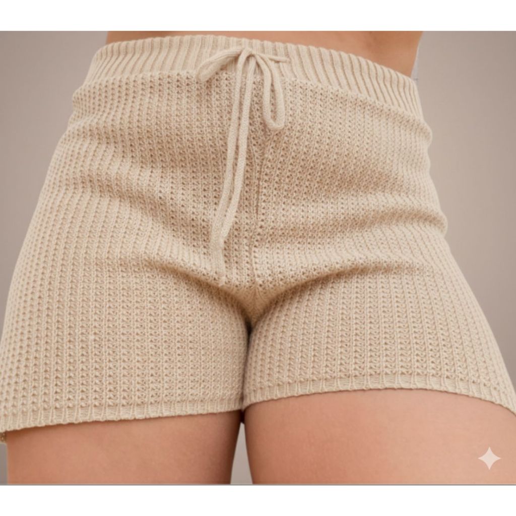 Short Saida De Praia Crochê Regulagem na Cintura Trico tricot Feminino Moda Praia Verão