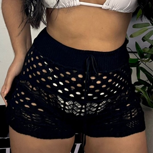 Short Saída de Praia Tricot Crochê Vazado Feminino Verão Moda Praia Piscina veste do 36 ao 42