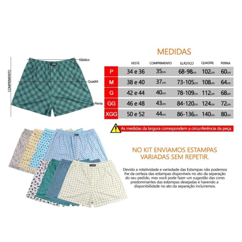 Obs: Algumas cores estão disponíveis em cores lisas e estampadas enviamos conforme disponibilidade. O anuncio é referente a 1 peça por cada unidade selecionada. Monte seu kit escolhendo a cor predominante, no anuncio estão disponíveis as cores para seleção no ato da compra. Basta selecionar as cores que mas combinam com você uma de cada vez ao seu carrinho de compras(como se fosse cada cor um produto diferente) e no final efetue o pagamento de todas juntas. Durma com estilo e conforto com nossos shorts de dormir Samba Canção Adulto! Fabricados em algodão sintético macio e estampados com designs vibrantes, nossos shorts são a escolha perfeita para uma boa noite de sono. E para garantir a qualidade, cada peça é marcada com o renomado selo Brotta. Não perca mais tempo com roupas de dormir sem graça e desconfortáveis. Experimente agora nossos shorts Samba Canção e sinta a diferença! TAMANHOS DISPONÍVEIS: P (Veste Manequins 34 e 36 M (Veste Manequins 38 e 40) G (Veste Manequins 42 e 44) GG (Veste Manequins 46 e 48) XGG (Veste Manequins 50 e 52) *Tamanhos equivalente ao manequim brasileiro. Favor confirme na 3ª FOTO DE CAPA DO ANUNCIO a tabela com as medidas em centímetros do produto e confirme se o tamanho do produto confere com as medidas desejada para que não haja nenhum tipo de transtornos para ambos os lados.