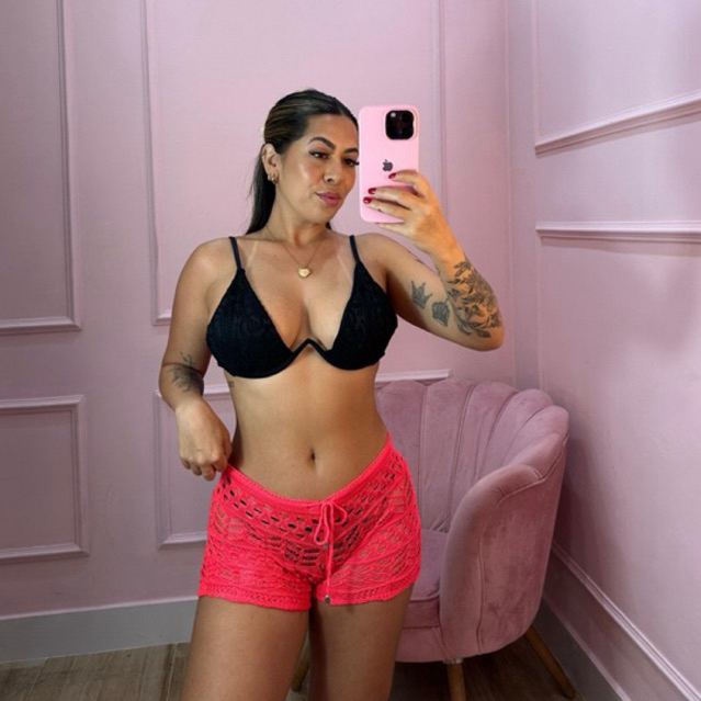 Short Shorts Feminino trico ( fio bom poliéster) Saída de praia Perfeito
