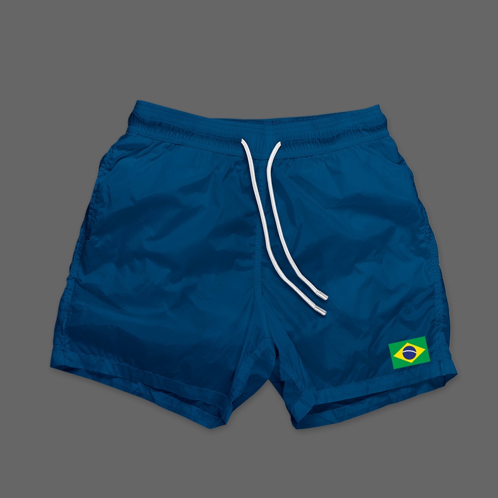 Short Tactel Brasil Com Bolso e Cordão Treino Corrida Academia Mauricinho Tactel Masculino Bermuda