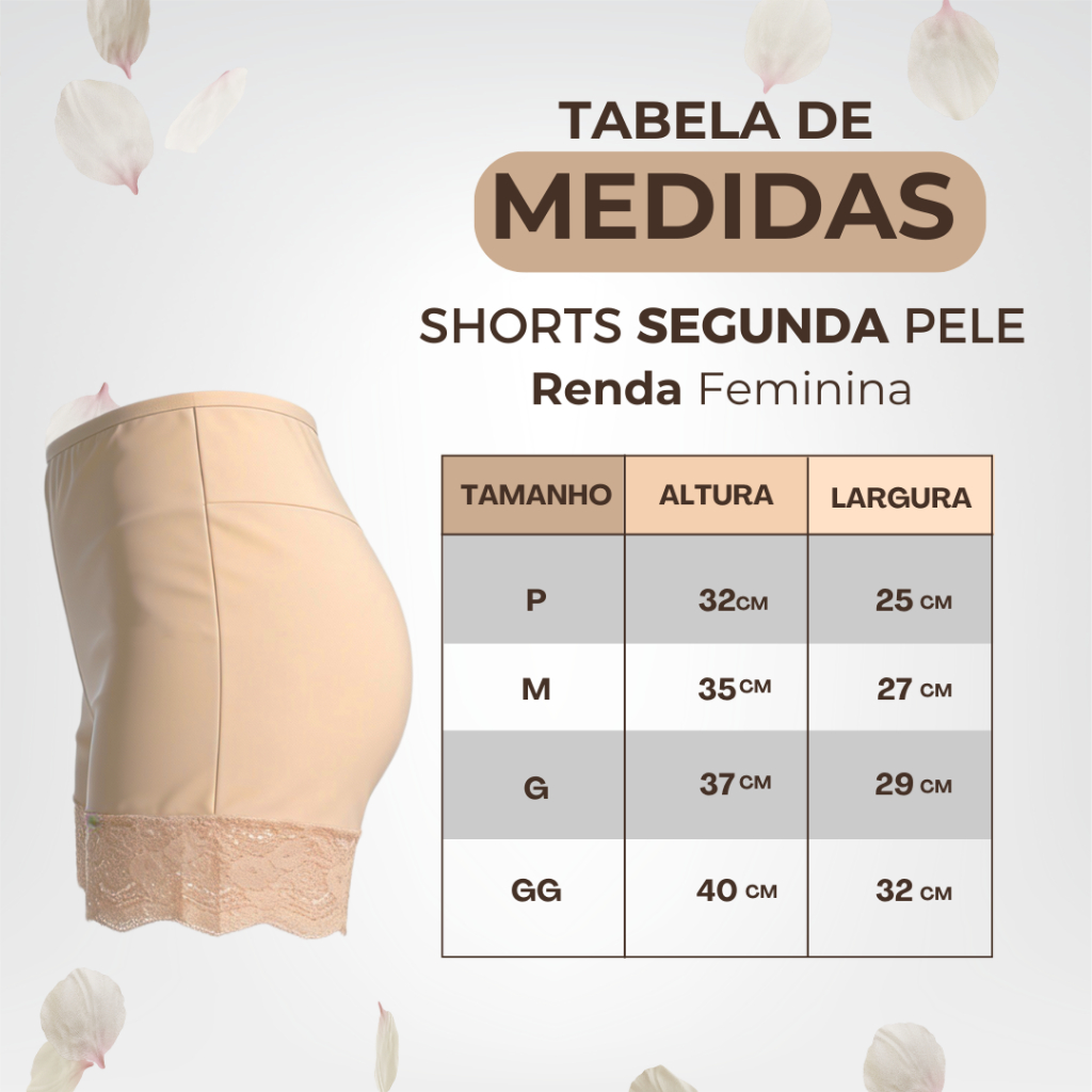 Bermuda Shorts Segunda Pele Anágua Cintura Alta Feminina O shorts feminino segunda pele é a escolha ideal para quem busca conforto, discrição e segurança no dia a dia. Com modelagem tipo anágua e cintura alta, ele se adapta perfeitamente ao corpo, oferecendo um ajuste confortável sem marcar a silhueta. Confeccionado em tecido leve e flexível, proporciona liberdade de movimentos e toque macio na pele, sendo perfeito para usar por baixo de vestidos, saias ou peças mais ajustadas. Ajuda a evitar transparências, atrito entre as pernas e garante mais confiança em qualquer ocasião. Características do produto: - Modelo: Shorts feminino segunda pele (anágua) - Cintura: Alta - Não marca a pele. - Renda na parte inferior da coxa. Tecido: 92% poliéster 8% elastano Cores: Preto e Bege Tamanhos: P, M, G e GG Tamanho: P – Largura 32cm – Altura 25cm M – Largura 35cm – Altura 27cm G – Largura 37cm – Altura 29cm GG – Largura 40cm – Altura 32cm Versátil e funcional, é um item indispensável no guarda-roupa feminino, ideal para uso diário ou ocasiões especiais.