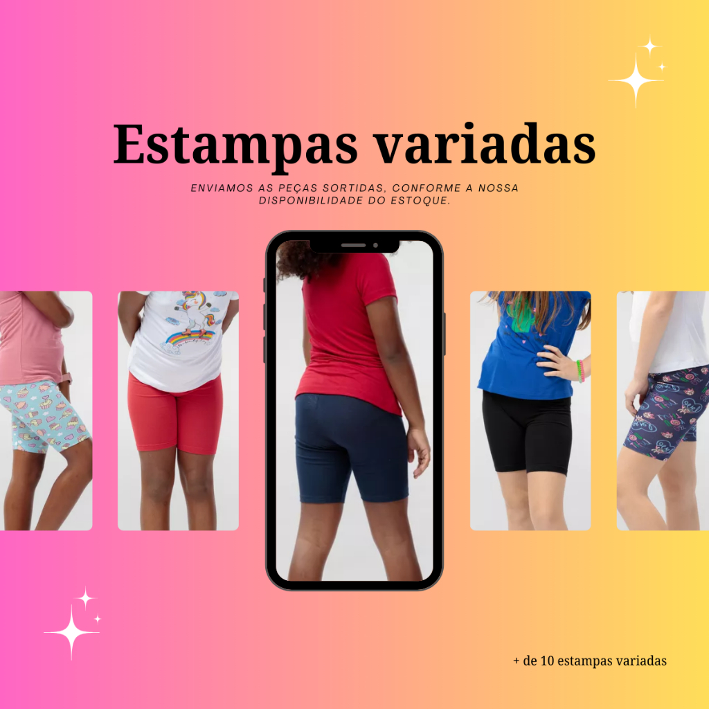 Apresente à sua pequena o conforto e a praticidade dos nossos Shorts Infantis de Cotton! Este shorts sortidas é perfeito para compor looks estilosos e confortáveis para o dia a dia. Com materiais de alta qualidade, os shorts garantem liberdade de movimento e um toque macio na pele. O QUE VOCÊ IRÁ RECEBER? - 02 Shorts em cores e estampas variadas BENEFÍCIOS - CONFORTO ABSOLUTO para o dia a dia - MATERIAL DE ALTA QUALIDADE que não desbota - FÓRMULA ANTIALÉRGICA, perfeita para a pele delicada - VARIEDADE DE ESTAMPAS que encantam as crianças CARACTERÍSTICAS - MALHA COTTON que proporciona leveza - COSTURA REFORÇADA para maior durabilidade - ENVIO RÁPIDO em até 24h úteis após a confirmação - PEÇAS REVISADAS DUAS VEZES antes do despacho TABELA DE TAMANHOS: 03: LARGURA: 24CM ALTURA: 25CM 04: LARGURA: 25CM ALTURA: 27CM 06: LARGURA: 26CM ALTURA: 30CM 08: LARGURA: 28CM ALTURA: 33CM 10: LARGURA: 29CM ALTURA: 34CM 12: LARGURA: 30CM ALTURA: 38CM 14: LARGURA: 31CM ALTURA: 40CM 16: LARGURA: 33CM ALTURA: 41CM Perguntas frequentes 1. As peças são todas do mesmo tamanho? R: Sim, todas as peças são do mesmo tamanho, garantindo uniformidade. 2. Como funciona o envio? R: O envio é realizado em até 24h úteis após a confirmação do pedido. 3. As estampas são escolhidas aleatoriamente? R: Sim, as estampas são sortidas e variadas, garantindo surpresa e diversão! 4. As peças são laváveis à máquina? R: Sim, recomendamos lavagem à máquina em ciclo delicado para preservar as cores e a qualidade. Qualquer dúvida, estamos aqui para ajudar! Aproveite a oportunidade de adquirir um kit incrível e cheio de estilo para a sua menina! shorts infantil feminino cotton legging confortável shorts legging infantil reforçado bermuda suplex short cotton infantil shorts menina short infantil menina kit bermudas shorts infantil juvenil suplex menina shorts infantil cotton bermuda