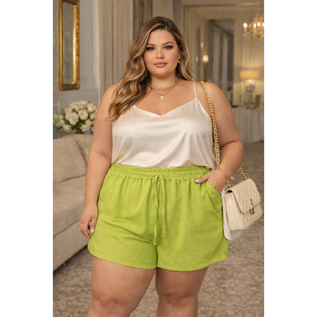 ATENÇÃO: CONFIRA AS MEDIDAS ANTES DE EFETUAR A COMPRA SHORTS FEMININO PLUS SIZE – TECIDO DUNA PREMIUM Grade disponível: GG, G1, G2 e G3 Produto de alta qualidade, confortável e com excelente caimento. CARACTERÍSTICAS DO SHORTS Tecido Duna Premium Tecido leve, molinho e fresquinho, com ótimo caimento Toque que lembra o crepe Não encolhe e não amassa Visual clean e elegante Possui elástico em toda a cintura Não possui forro GRADE E MEDIDAS As medidas podem variar em até 2 cm devido ao corte. GG (44/46) Cintura: 80 cm Quadril: 128 cm Coxa: 76 cm Comprimento: 40 cm G1 (46/48) Cintura: 82 cm Quadril: 132 cm Coxa: 78 cm Comprimento: 42 cm G2 (48/50) Cintura: 84 cm Quadril: 136 cm Coxa: 82 cm Comprimento: 43 cm G3 (50/52) Cintura: 86 cm Quadril: 140 cm Coxa: 84 cm Comprimento: 44 cm INFORMAÇÕES IMPORTANTES Pedidos realizados até meio-dia são coletados no mesmo dia. Não será possível trocar cor ou tamanho após a confirmação do pagamento. Não será possível alterar o endereço de entrega após a compra. As cores do produto podem variar levemente devido à iluminação ou resolução da tela. dúvidas, nos chame no chat ! Boas Compras :)