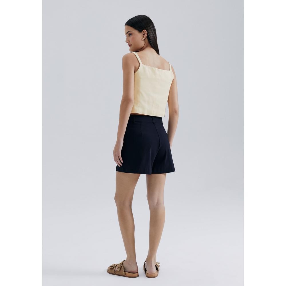 Descubra nosso shorts feminino em alfaiataria, projetado para oferecer um caimento elegante em shape A. Com barra que valoriza a silhueta, ele é perfeito para os dias mais quentes. Os bolsos embutidos frontais falsos adicionam um toque contemporâneo e discreto ao design.Detalhes da peça:Tecido com elastanoCintura altaCós alfaiatadoPrega frontalBolsos frontais falsos