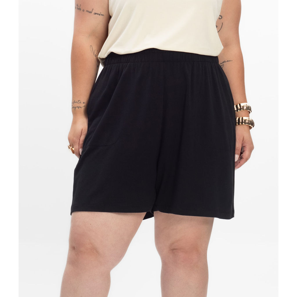 Shorts Feminino Plus Size Com Bolsos Secret Glam Preto