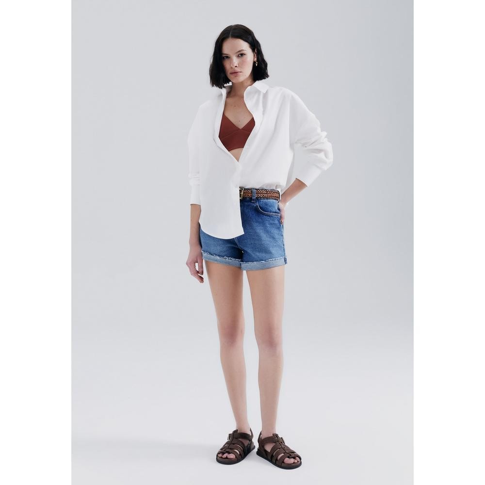 Shorts reto em jeans com elastano, bolsos com pala costas tradicionais, barra dobrada e a fio. Possui ainda cintura média e fecho de zíper e botão.Detalhes da peça:Jeans com elastanoModelagem retaCintura médiaBarra dobrada a fioBolsos funcionaisFecho de zíper e botão