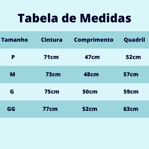 Tabela rápida para você comparar este item com outros similares de Calças e Bermudas dentro do nosso catálogo.