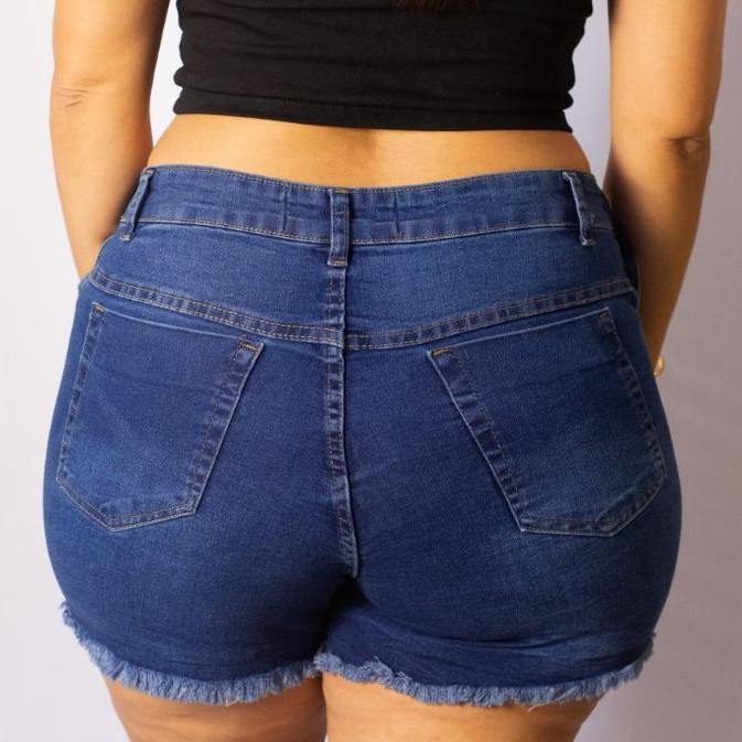 SHORTS SAIA JEANS FEMININO PLUS SIZE BARRA DESFIADA CINTURA ALTA COM LYCRA
