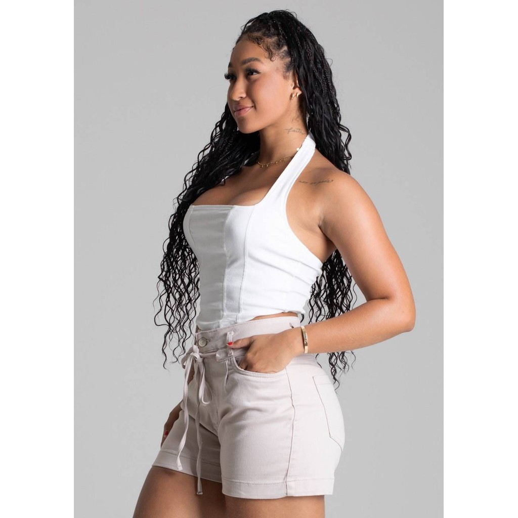 Shorts confeccionada em sarja. Modelagem soltinho. Cintura média Fechamento com botão e zíper cos acompanha cordao da mesma lavagem Bolsos frontais e bolsos traseiros funcionais Barra simples Tecido: Sarja Tipo de lavagem: Color Cor: Bege Composição: 73% ALGODÃO 24% POLIÉSTER 3% ELASTANO