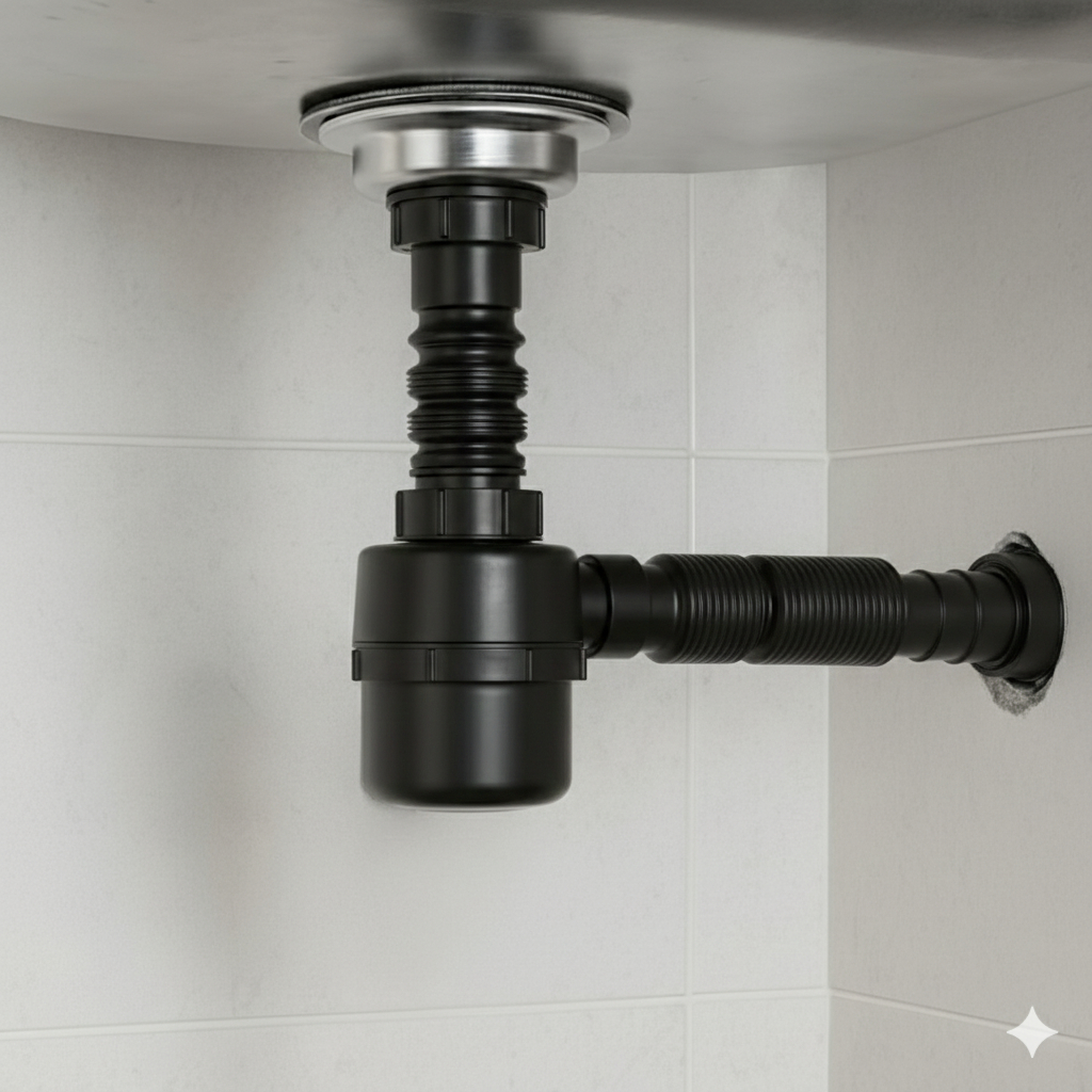 Sifão Copo Universal Sanfonado Preto – Para Pia, Lavatório e Tanque – 1, 2 ou 5 Unidades