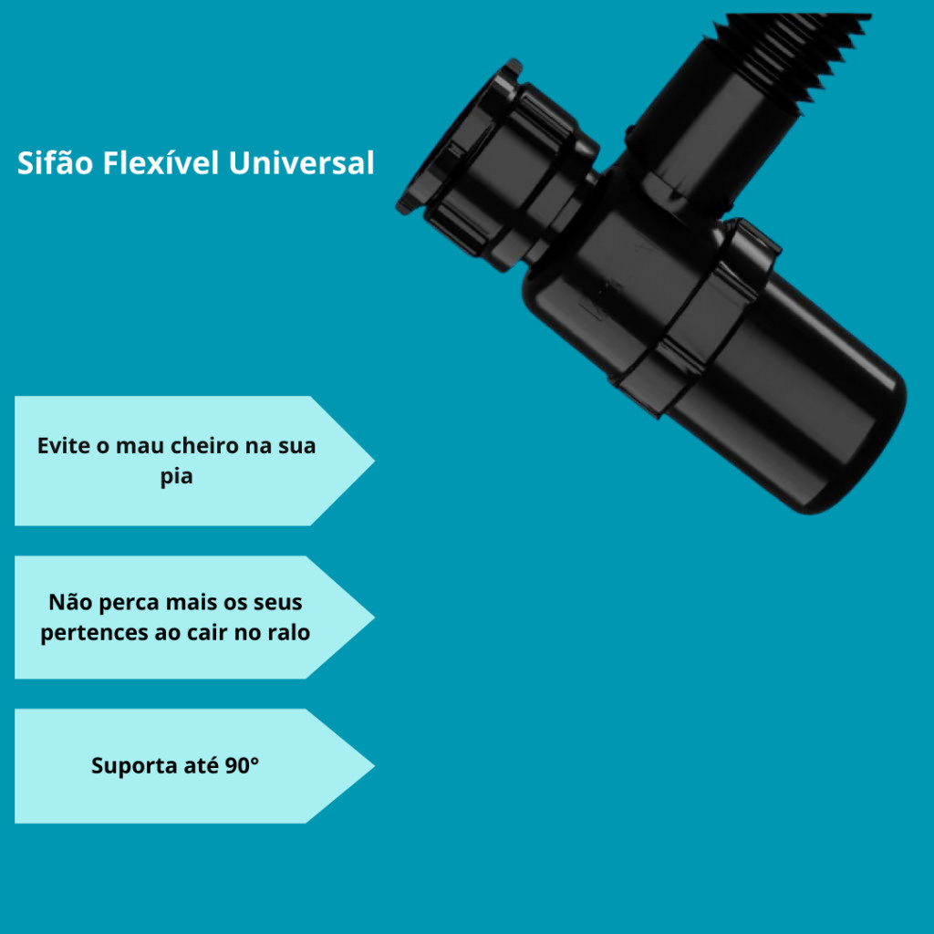 Sifão Copo Sanfonado Universal para Pia, Lavatório e Tanque – Suporta até 90°C O Sifão Copo Sanfonado Universal é a solução ideal para garantir uma instalação prática, segura e eficiente em pias, lavatórios e tanques. Fabricado em material resistente e de alta durabilidade, ele evita mau cheiro e facilita o escoamento da água, mantendo seu ambiente sempre limpo e funcional. Seu tubo flexível sanfonado permite ajustar facilmente a posição durante a instalação, adaptando-se a diferentes tipos de encanamento. Além disso, suporta água quente de até 90°C, oferecendo maior resistência no uso diário. Perfeito para quem busca praticidade, vedação eficiente e instalação rápida. ✅ Principais Benefícios ✔ Evita retorno de mau cheiro do esgoto ✔ Tubo sanfonado flexível – fácil ajuste na instalação ✔ Instalação simples e rápida ✔ Alta durabilidade e resistência ✔ Suporta água quente até 90°C ✔ Vedação eficiente contra vazamentos 🔧 Aplicações • Pia de cozinha • Lavatório de banheiro • Tanque de lavanderia 📏 Medidas Compatíveis Adaptável para saídas de: • 7/8" • 1 1/4" • 1 1/2" 📦 Conteúdo da Embalagem • 1 Sifão Copo Sanfonado • Adaptadores de medida 💡 Instalação fácil – não necessita ferramentas especiais