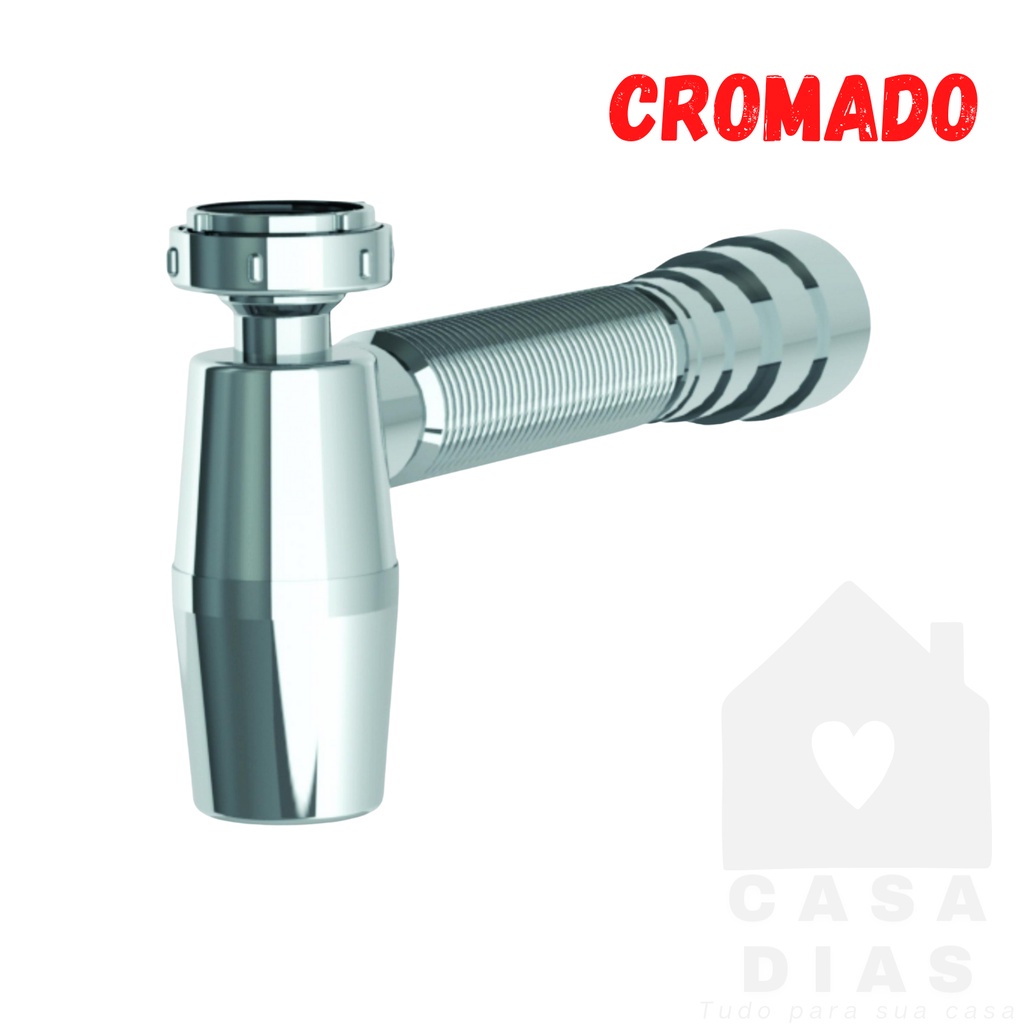 Sifão Copo com Tubo Extensivo Universal 40cm - CROMADO, BRANCO OU PRETO. 03 OPÇÕES DE ACABAMENTO PARA SUA ESCOLHA. Marca: Valeplast Embalagem: Saco Plástico O sifão Copo com tubo extensivo universal é a melhor opção para quem busca um produto versátil e prático para escoamento de águas servidas dos ambientes. Atenção: Todos os 03 modelos quando esticados até o limite, possuem 42 cm de comprimento máximo. Fabricado em polipropileno, um tipo de plástico ultrarresistente que suporta extremas temperaturas da água, com interior antiaderente, o uso correto assegura um ambiente livre dos maus odores do esgoto. CARACTERÍSTICAS: - Material: plásticos de engenharia e elastômeros. - Acabamento: Cromado, Branco ou Preto. - Comprimento: 0,40m (máx) 0,20m (min). - Diâmetros de saída: DN38, DN40, DN48, DN50. - Acompanha canopla- Rosca (G): 1.1/2 x 1.1/4 x 7/8. -Emabalagem: 01 Peça Dúvidas, estou a disposição.