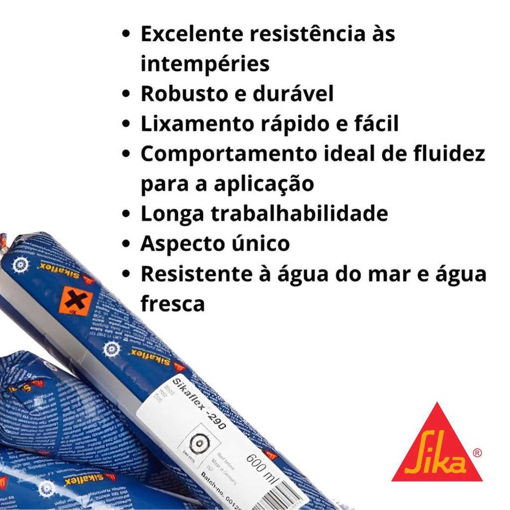 SIKAFLEX® -290 DC PRO (SACHÊ 600ML) PRETO - SIKA O Sikaflex®-290 DC PRO é um selante de poliuretano monocomponente, projetado especificamente para a calafetação de decks de madeira em embarcações. Este produto de alta performance é formulado para resistir às condições adversas do ambiente marítimo, garantindo durabilidade, eficiência e proteção contra a umidade. Características Principais: - Base Química: Poliuretano monocomponente - Cor: Preto - Mecanismo de Cura: Reação com a umidade do ar - Tempo de Formação de Película: 90 minutos Benefícios do Produto: - Excelente resistência às intempéries e ao ambiente marinho. - Robusto e durável, ideal para aplicações em condições severas. - Lixamento rápido e fácil para acabamento perfeito. - Longa trabalhabilidade, permitindo ajustes durante a aplicação. - Aspecto único que se integra esteticamente ao material. - Resistente à água do mar e água doce, garantindo proteção duradoura. Áreas de Aplicação: - Decks de Embarcações: Calafetação de juntas em decks de madeira de barcos e iates. - Construção de Barcos: Aplicação em juntas de madeira em barcos de recreio e embarcações comerciais. - Reparo de Juntas: Restauração de juntas deterioradas em decks de madeira. - Aplicações em Áreas Externas: Selagem de juntas em áreas externas expostas à umidade e intempéries. - Calafetação de Juntas em Estruturas Náuticas: Vedação de juntas de conexão entre partes de madeira em embarcações. - Uso em Projetos de Marcenaria Náutica: Ideal para acabamentos que exigem alta resistência e durabilidade. Instruções de Aplicação: - Preparação da Superfície: As superfícies devem estar limpas, secas e livres de graxa, óleo e poeira - Aplicação: Utilize equipamentos adequados como bombas ou pistolas de aplicação. Embalagem: - Sache de 600 ml